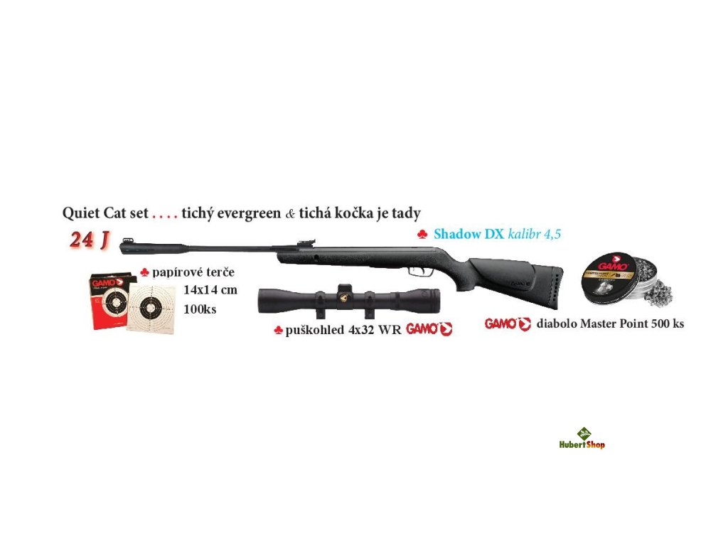 set = vzduchovka DX 4,5 mm + puškohled 4×32 WR + terč 100 ks + diabolo Gamo Master Point 500 Ks